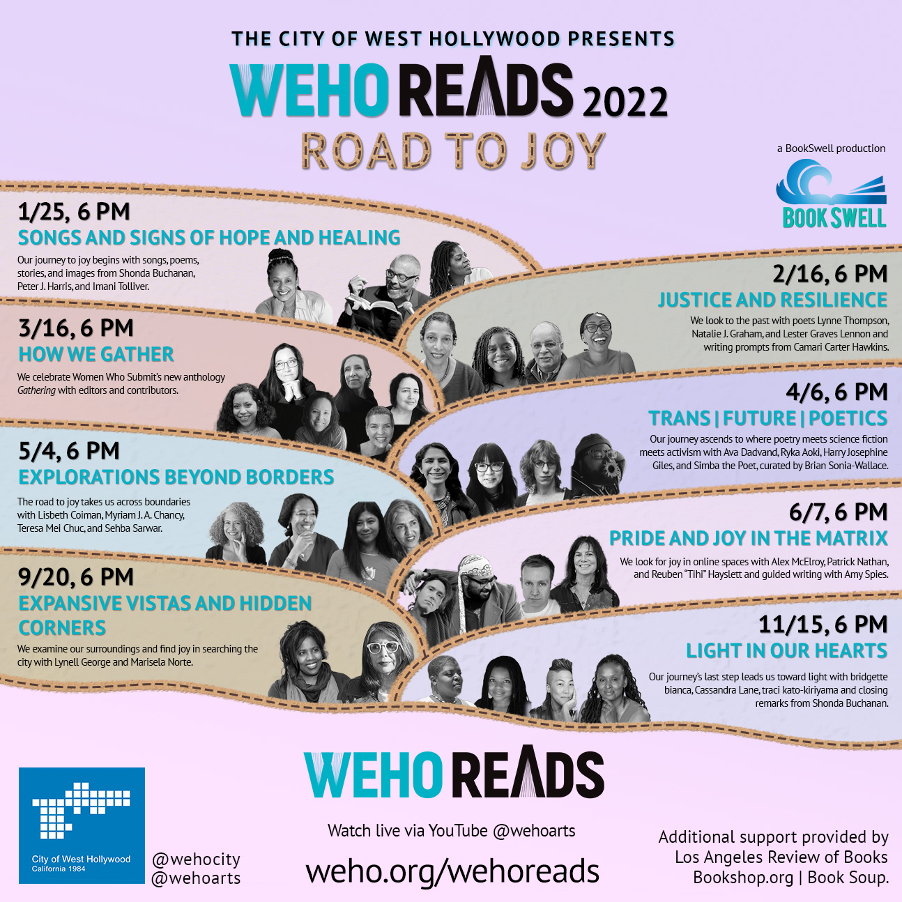 Great news! BookSwell has been selected by the City of West Hollywood’s Arts Division to produce the 2022 WeHo Reads season. BookSwell founder and managing editor Cody Sisco proposed a series of eight online events on the theme of creating joy in the midst of sorrow that will take the audience on a memorable journey throughout 2022.
