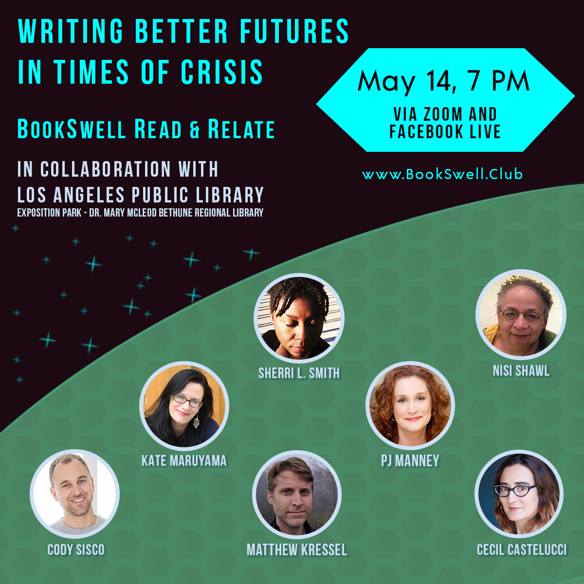 To debate these questions, we’re gathering science fiction and speculative fiction authors who’ve written utopian and dystopian stories. BookSwell Read & Relate vidchat salon host Cody Sisco will welcome guest host Kate Maruyama along with guest authors Cecil Castellucci, Matthew Kressel, PJ Manney, Nisi Shawl, and Sherri L. Smith.